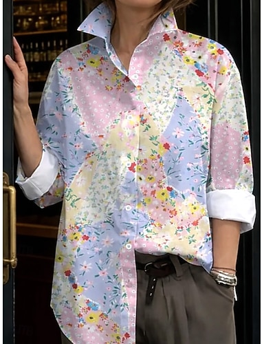 Per donna Blusa Patchwork Bottoni Stampato Floreale Grafico Vintage Quotidiano Elegante Manica Lunga Colletto a Camicia Top Regolari Quotidiano Rosa Estate Primavera