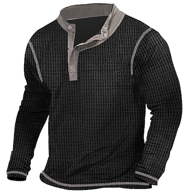 Per uomo maglietta Camicia Henley Waffle Camicia Henley T-shirt Maglia a maniche lunghe Collage Henley Strada Da mare Manica lunga Collage Abbigliamento Di tendenza Originale Essenziale