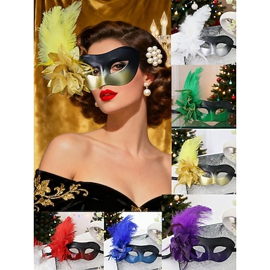 maschera da donna in piume verdi con decorazione floreale per feste di Natale, ballo &carnevale