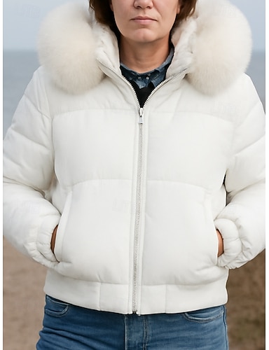 Per donna Cappotto Invernale Giacca imbottita Cappotto in Pelliccia Sintetica Caldo Confortevole Bordo in pelliccia Cerniera Tasca Casual Semplice All'aperto Vacanza Streetwear Abbigliamento