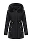 Per donna Cappotto Invernale Antivento Caldo Bordo in pelliccia Cerniera Bottoni All'aperto Tinta unica Lavoro Casuale Monopetto Felpa con Cappuccio Vestibilità comoda Manica Lunga Capispalla Nero