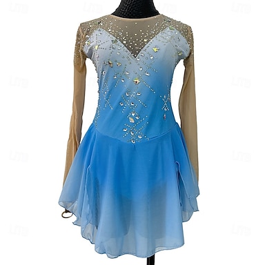 Vestito da pattinaggio artistico Per donna Da ragazza Pattinaggio sul ghiaccio Vestiti Blu Foro per pollice tintura sfumata Elevata elasticità Professionale Competizione Vestiti da pattinaggio sul
