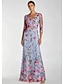 Linea ad A Lunghezza al pavimento Vestito maxi Abito da invitata a nozze Abito da cerimonia per signora Manica 3/4 Scollo a V Elegante Vintage Formale Raso Pizzo Organza con Stampa floreale Ricamo