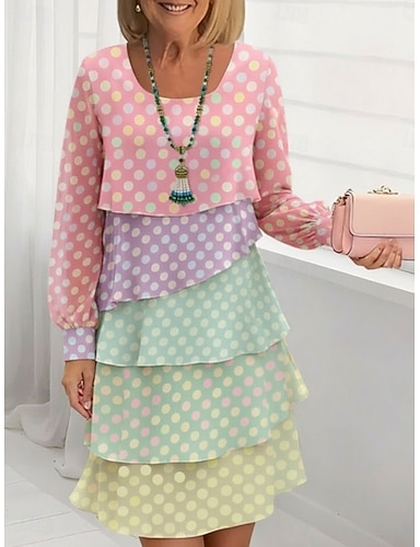 Abito mini donna girocollo maniche lunghe abito t-shirt abito tee abito a trapezio abito casual quotidiano taglio regolare grafica geometrica blu viola marrone autunno inverno