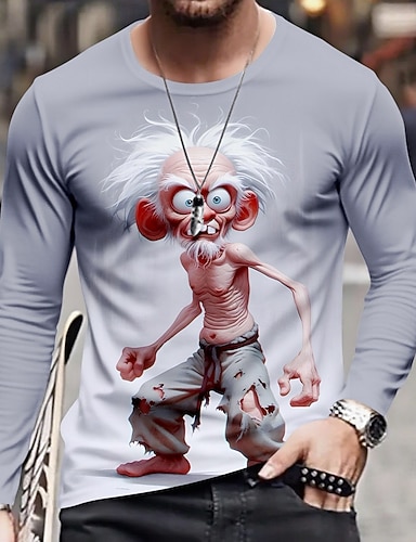 Per uomo Divertente Vecchio Uomo Maglietta Manica Lunga maglietta Stampa 3D Girocollo Camicia Moda Essenziale Streetwear Casuale Quotidiano Erica grigia Cachi Grigio Estate Primavera Abbigliamento S