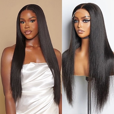Parrucca diritta crespa anteriore in pizzo 13x6 hd trasparente yaki chiusura frontale diritta parrucche di capelli umani per le donne parrucca senza colla di densità 180% da 20 pollici pre pizzicata