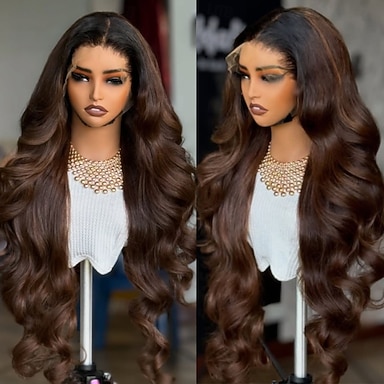 Parrucca brasiliana 100% vergine con chiusura in pizzo 5x5, parrucca frontale completa in pizzo 13x4 con capelli umani, parrucca bicolore color castano scuro con attaccatura dei capelli naturale senza