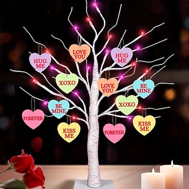 Decorazione luminosa a forma di albero di betulla per la Festa della Mamma 60cm/24Pollici Alimentata a Batterie AAA e USB Regalo per Fidanzata Amante Moglie Madre Decorazione per Interni Letto