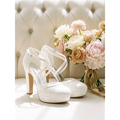 sandali con tacco alto e plateau color carne da donna, scarpe eleganti con tacco a blocco spesso per gli invitati ai matrimoni in città