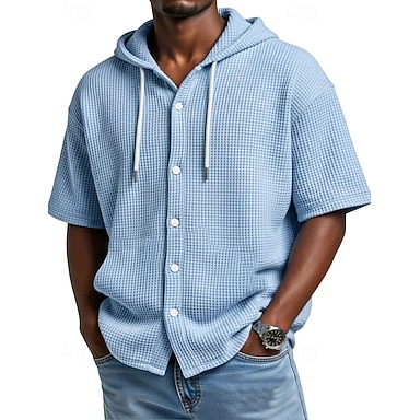 Per uomo Camicia Camicia a nido d'ape Camicia casual Camicia con Bottoni Nero Bianco Verde chiaro Rosso Blu marino scuro Manica Corta Tinta unica Semplice Con Cappuccio Casuale Quotidiano Patchwork