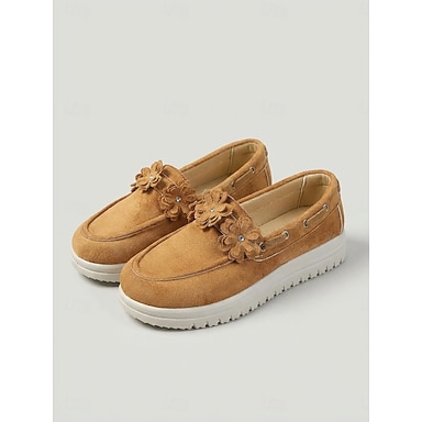 Mocassini floreali color cammello da donna – Scarpe slip-on con piattaforma e decorazione floreale mocassini casual leggeri per giardino viaggi e uso quotidiano
