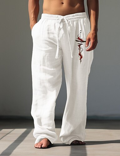 Pantaloni casual in cotone da uomo di albero di cocco, pantaloni da indossare ogni giorno, per le vacanze, per uscire, pantaloni elasticizzati a vita media