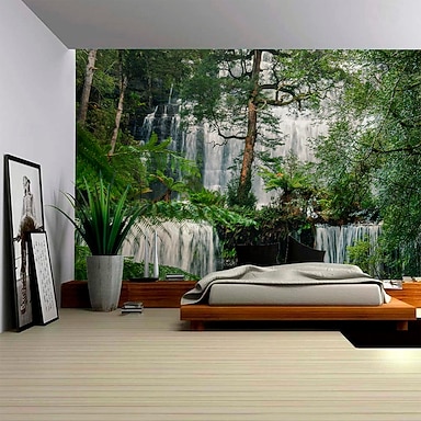 Arazzo moderno con cascata nella foresta, paesaggio tropicale, ideale da appendere alla parete di camera da letto, soggiorno, dormitorio, stanza universitaria, decorazione per la casa, sfondo