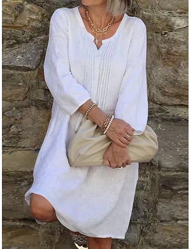 Per donna Mini Abito Finto cotone e lino Abito a Tubino Casual Quotidiano Vestibilità comoda Semplice Manica 3/4 Scollo a V Nero Bianco Rosa Vino Estate Primavera Autunno