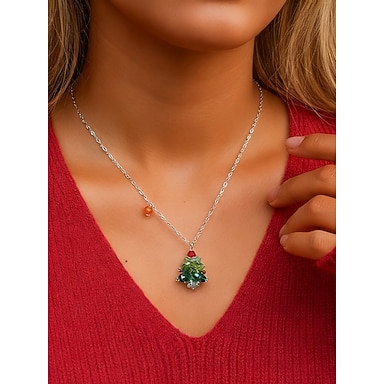 Gioielli natalizi in acrilico da donna: collana e orecchini a forma di albero festivo con fiocchi rossi, perfetti per feste e celebrazioni natalizie