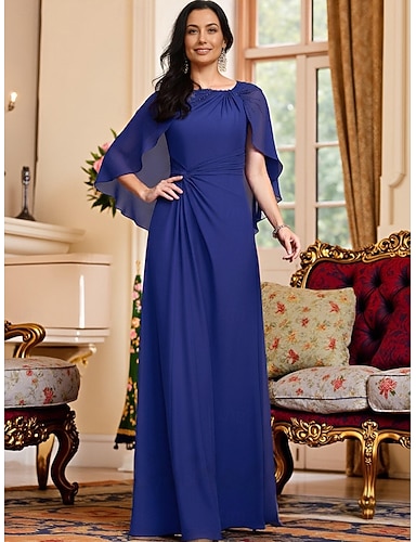 Linea ad A Abito Lunghezza al pavimento Abito da invitata a nozze Abito Formale Abito da sera Abito da cerimonia per signora Mezza Manica Scollo a Cascata Elegante Formale Riunione di famiglia Chiffon