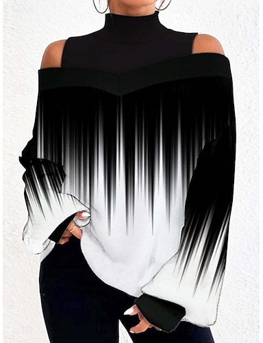 Per donna Blusa Patchwork Stampato Geometrico Plaid Elegante Casual Manica Lunga Collo Alto Top Regolari Quotidiano Nero Bianco Cachi Grigio Primavera Autunno Inverno