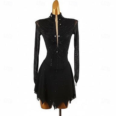 Abito da pattinaggio artistico Per donna Ragazze Pattinaggio sul ghiaccio Vestito Nero Patchwork Rete Alta elasticità Allenamento Competizione Vestiti da pattinaggio sul ghiaccio Classico Cristallo