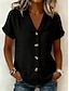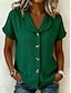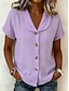 Per donna Blusa Camicia in finto lino Bottoni Tinta unica Vintage Elegante Casual Manica Corta Collo ripiegato Top Regolari Quotidiano Verde salvia Nero Giallo Blu Reale Viola Estate Primavera