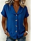 Per donna Camicia Blusa Finto cotone e lino Arricciato Bottoni Semplice Vintage Elegante Manica Corta Scollo a V Top Regolari Quotidiano Ferie Uscire Blu Bianco Giallo Rosa Estate Primavera