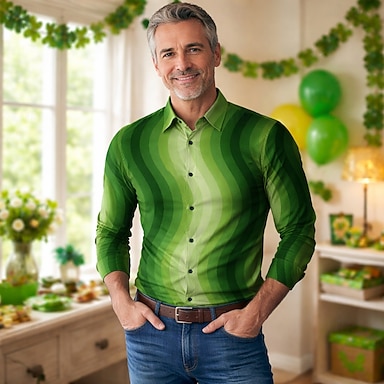 San Patrizio 2026 Retrò Vintage Anni '70 Camicia Camicia Aloha Lunghe Hippie Costume Per uomo Mascherata 4 Luglio Feste Festival Adulti Camicia