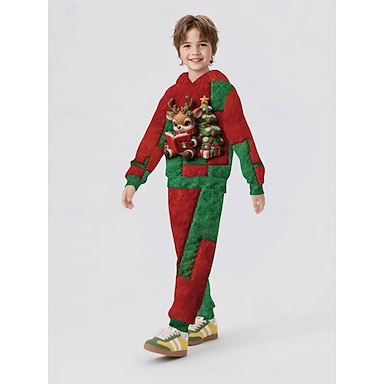 Natale Ragazzi 3D Grafico Ogni Albero di Natale Set di Natale regalo di Natale Set Felpa con cappuccio & Pantaloni della tuta Manica Lunga Primavera Autunno Quotidiano Essenziale Casual Bambini Dai 4