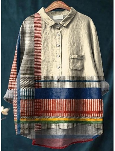 Per donna Camicia Bottoni Stampato Grafico Geometrico Elegante Moderno Casual Manica Lunga Colletto a Camicia Top Regolari Quotidiano Lavoro Rosso Cachi Estate Primavera