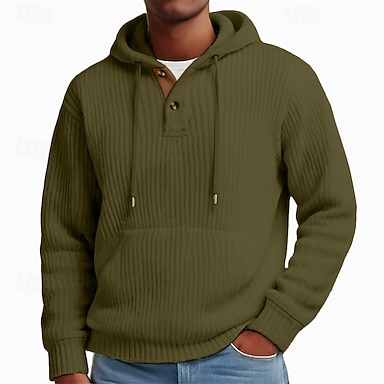 Per uomo Felpa con cappuccio Maglione Maglia a coste Verde militare Con Cappuccio Semplice Patchwork Tasca a marsupio Testurizzato Casuale Quotidiano Sport & Outdoor Vintage Cool Abbigliamento