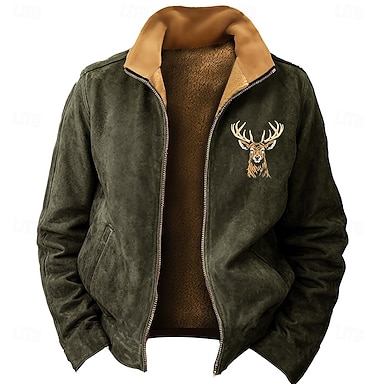 Per uomo Mucca Pile Felpa con Cappuccio Felpe con cappuccio Felpa Moda Cool Quotidiano Manica Lunga Con Cappuccio Ferie Abbigliamento casual alla moda Blu Marrone Verde Cachi Cerniera Tasca Autunno