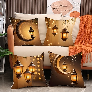 federa per cuscino Ramadan Eid, mezzaluna dorata &stampa lanterna, decorazione per festival mediorientali, cuscino per divano in stile etnico per soggiorno e sala di preghiera