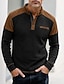 Per uomo Maglietta Waffle Manica Lunga Collo Alto Con cerniera Autunno Inverno Blocco di colori Tradizionale / Vintage Casual Con zip Stile Vintage All'aperto Casa Sport & Outdoor Nero Maglietta Top