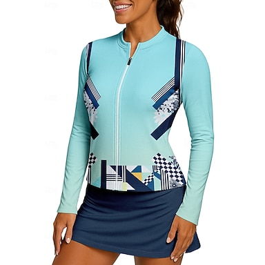 Per donna Geometrico Maglietta Maglietta sportiva Polo da golf Maglia da tennis Manica Lunga Cerniera Floreale UPF50+ Resistente ai Raggi UV Alta elasticità Traspirante Tennis Golf Pickleball Collo