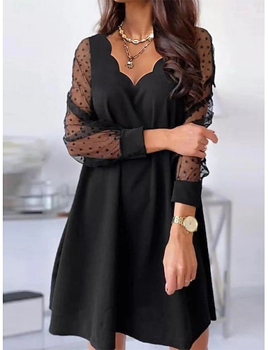 Per donna Mini Abito Abito a trapezio Casual Quotidiano Vestibilità regolare Semplice Manica Lunga Scollo a V Nero Primavera Autunno
