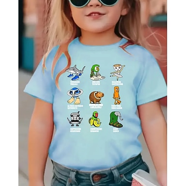 100% cotone, maglietta per bambini, bambina, blu, nero, bianco, con stampa grafica, girocollo, manica corta, quotidiano, outdoor, streetwear, sportivo, moda, casual, estate, primavera