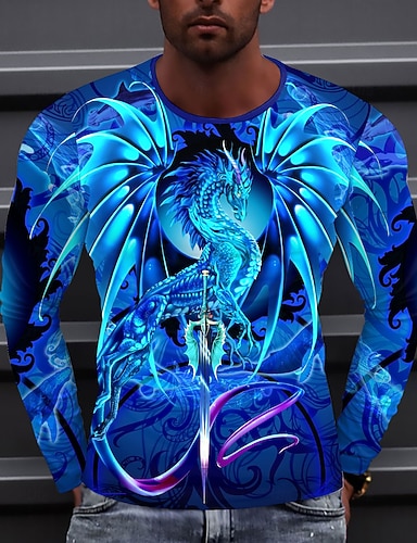 Per uomo Drago Maglietta Manica Lunga maglietta Stampa 3D Girocollo Camicia Moda Esagerato Streetwear Casuale Quotidiano Blu Estate Primavera Abbigliamento S M L XL XXL XXXL