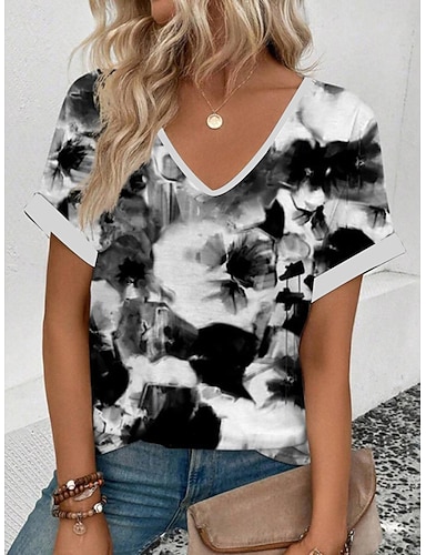 Per donna Maglietta Stampato Floreale Grafico Piante Vintage Elegante Classico Manica Corta Scollo a V Top Regolari Casuale Quotidiano Weekend Nero Bianco Verde Estate Primavera