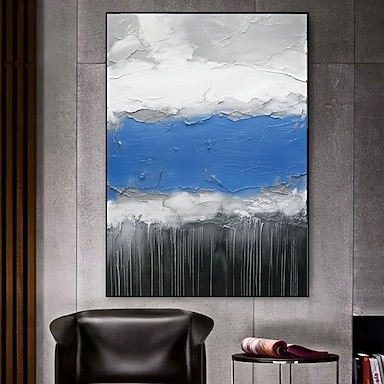 Grande opera d'arte da parete fatta a mano astratta blu e bianca minimalista arte da parete geometrica blu moderna astratta pittura decorativa da parete acrilica bianca