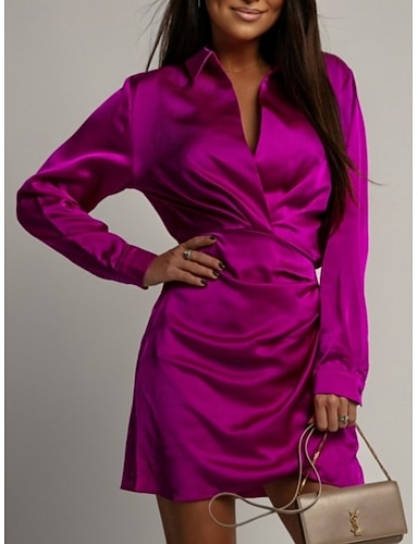 Per donna Mini Abito Abito in Raso Abito da Ballo Vestito da Festa Abito da Cocktail Elegante Moda Moderno Festa serale Feste Compleanno Taglia piccola Semplice Manica Lunga Colletto a Camicia Blu