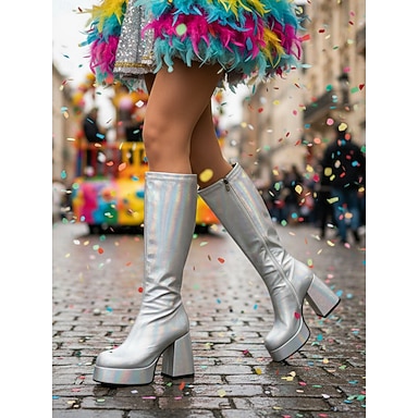 Stivali alti in oro metallico retro degli anni '80 per donne con tacco a blocco - Perfetti per le sfilate di Carnevale e le celebrazioni festive