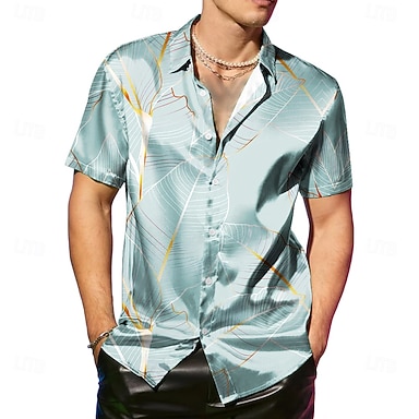 Per uomo Albero di Cocco Piante Tropicali Camicia in raso Camicia elegante Camicia con Bottoni Manica Corta Moda Casual Vacanza Abbigliamento da sera Quotidiano Estate Primavera Collo ripiegato