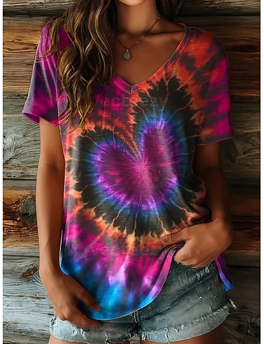 Per donna Maglietta Stampato Ombre Grafico Vintage Elegante Classico Manica Corta Scollo a V Collo a V Top Regolari Quotidiano Uscire Weekend Blu Viola Arancione Verde Estate Primavera