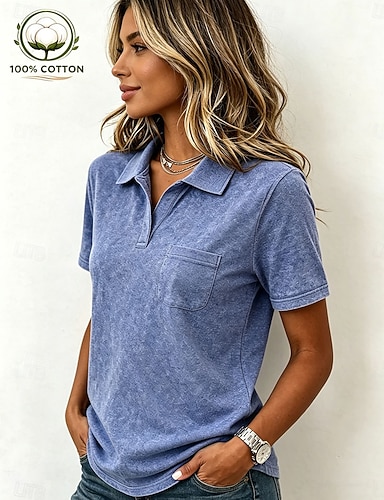Blusa da donna in 100% cotone di colore solido elegante casual maniche corte scollatura a V top regolari quotidiani vacanze bottoni nero blu viola verde beige estate primavera
