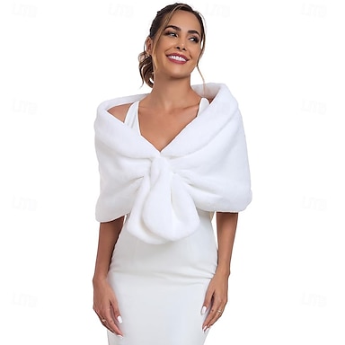 Scialle in pelliccia sintetica, stola, coprispalle invernale, sciarpa da sposa, da sposa, da sera, da festa, per donna
