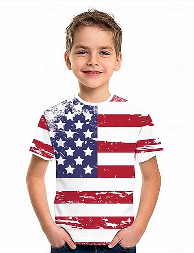 Ragazzi 3D Grafico 250° anniversario Maglietta Manica Corta Stampa 3D Estate Primavera Sport Moda Streetwear Bambini 4-12 Anni Girocollo Casuale Quotidiano All'aperto Vestibilità regolare