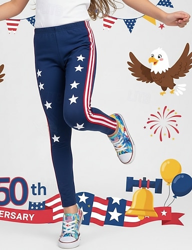 Giorno dell'Indipendenza americana Ragazze 3D Bandiera Maglietta Manica Corta Estate Primavera Moda Essenziale Bambini 4-12 Anni Girocollo Casuale Quotidiano All'aperto Vestibilità regolare