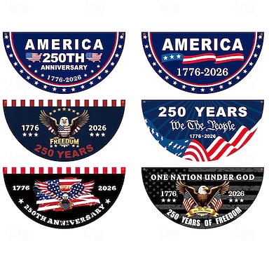 6 bandiere con festone per il 250° anniversario degli Stati Uniti, striscioni patriottici per il semiquincentenario degli Stati Uniti dal 1776 al 2026, bandierine plissettate con aquila per i 250 anni di libertà, per decorazioni da giardino, ringhiere per