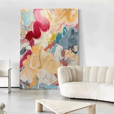 Dipinto ad olio fatto a mano su tela, decorazione murale moderna con colori dopamina e texture astratta per l'arredamento di casa, con cornice da appendere/arrotolato, senza cornice, dipinto non