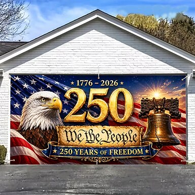 Decorazione patriottica per la porta del garage in occasione del 250° anniversario degli Stati Uniti, ideale per celebrazioni all'aperto e decorazioni festive.
