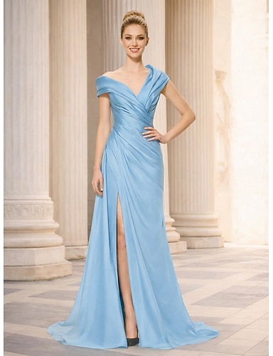 Tubino Colonna Lunghezza al pavimento Abito Formale Abito da sera Abito a mantella Abito da Sera Elegante Stile Celebrità Senza Maniche Monospalla Festa in giardino Matrimonio Crepe Elasticizzato con
