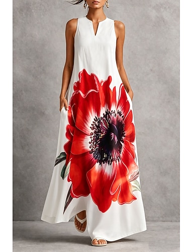Per donna Abito maxi Abito a trapezio Vacanza Casual Boho Ferie Vestibilità comoda Floreale Grafico Senza Maniche Scollo a V Blu Nero Bianco Giallo Estate Primavera